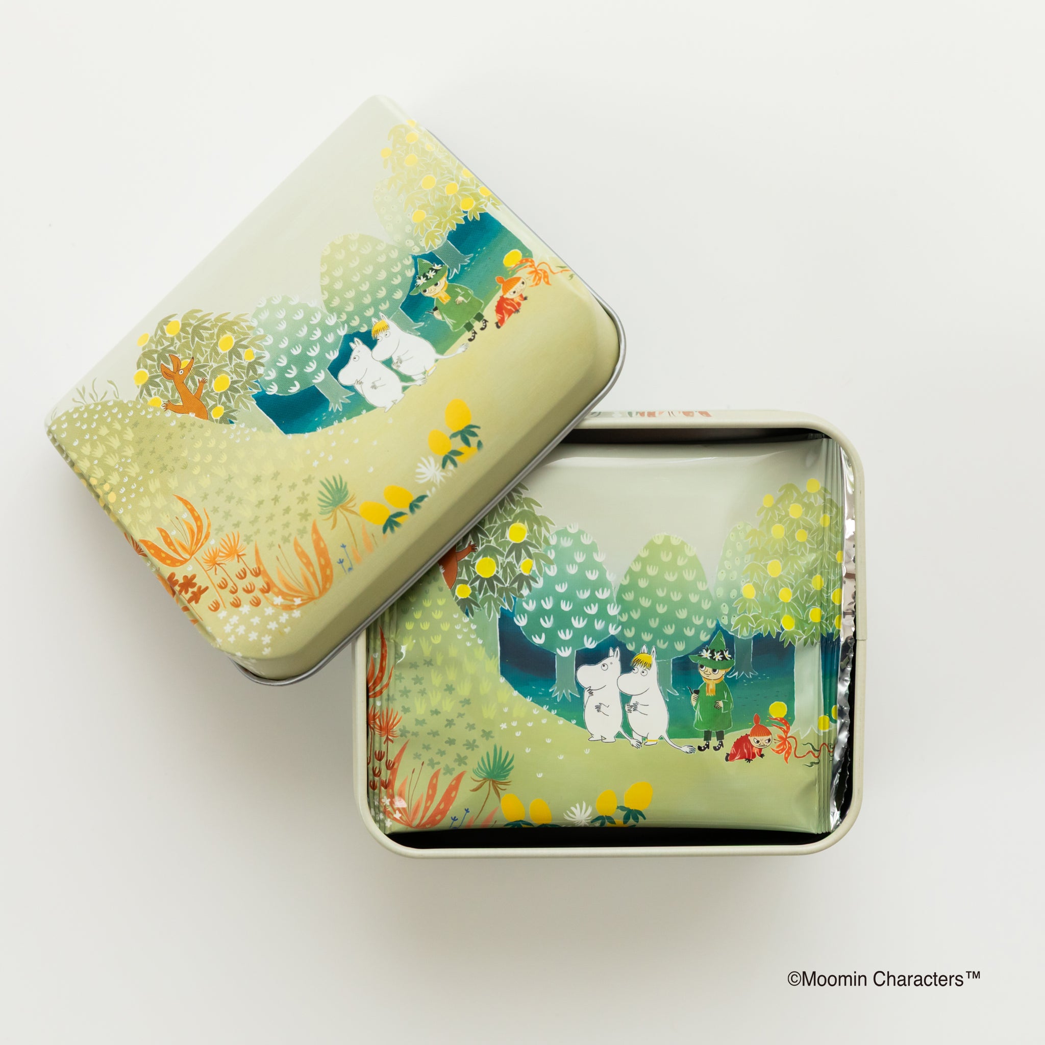 缶だけでなく、個包装にも同じアートがあしらわれ、開けるたびに物語の世界が広がります。