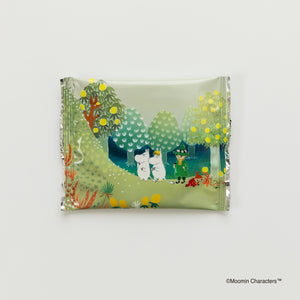 ムーミン、スノークのおじょうさん、スナフキンなど、おなじみのキャラクターたちが水彩タッチで描かれた美しいデザインが魅力です。
