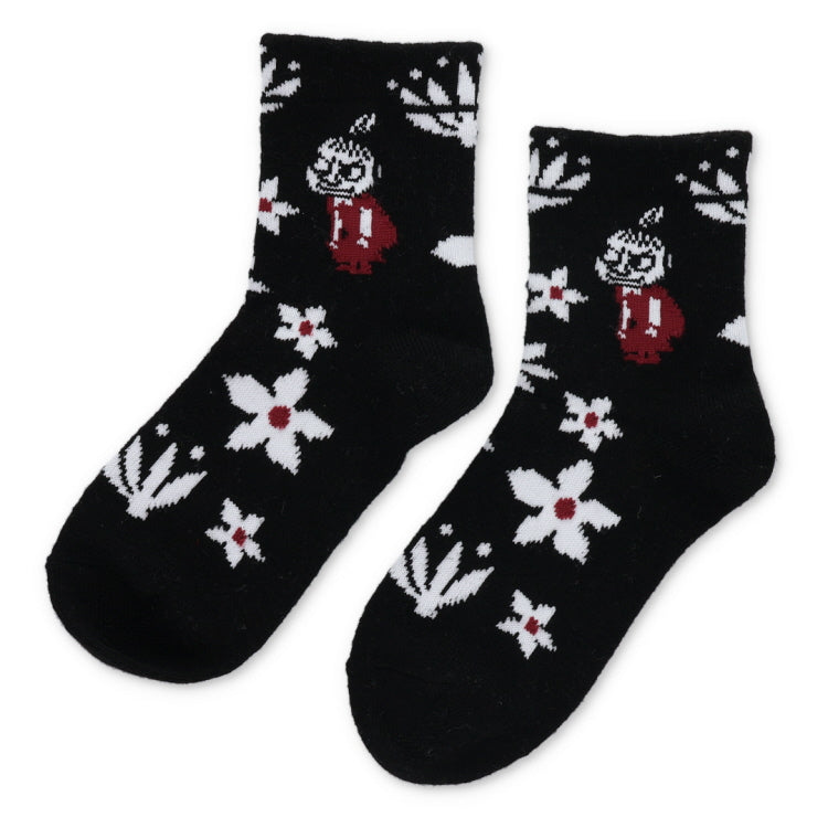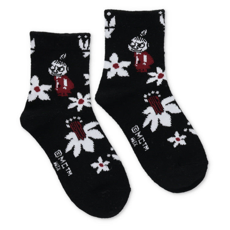 ロークルーソックス やわらかW(リトルミイと花柄/ブラック)MNL453510-001