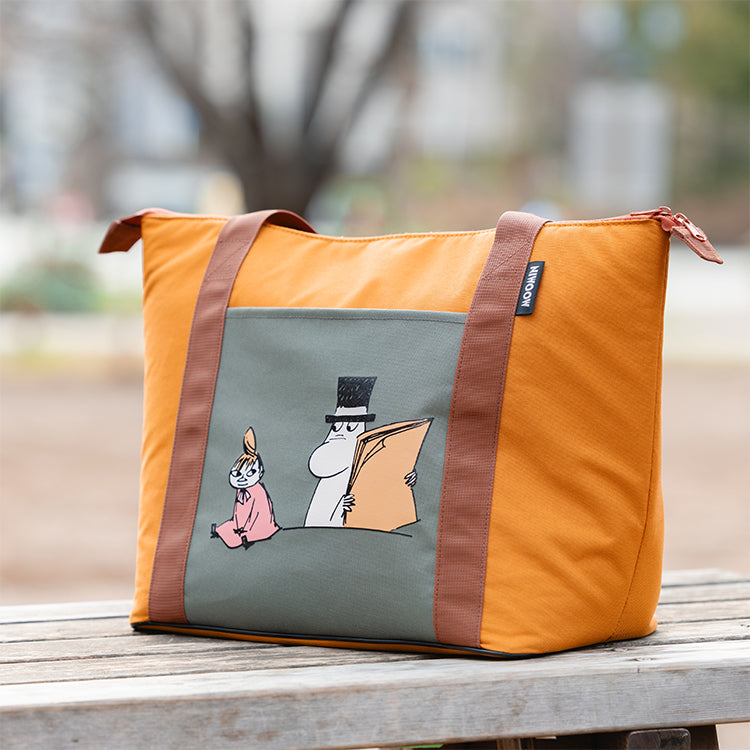 リトルミイとムーミンパパが描かれた、大容量の保冷クーラートートバッグ。