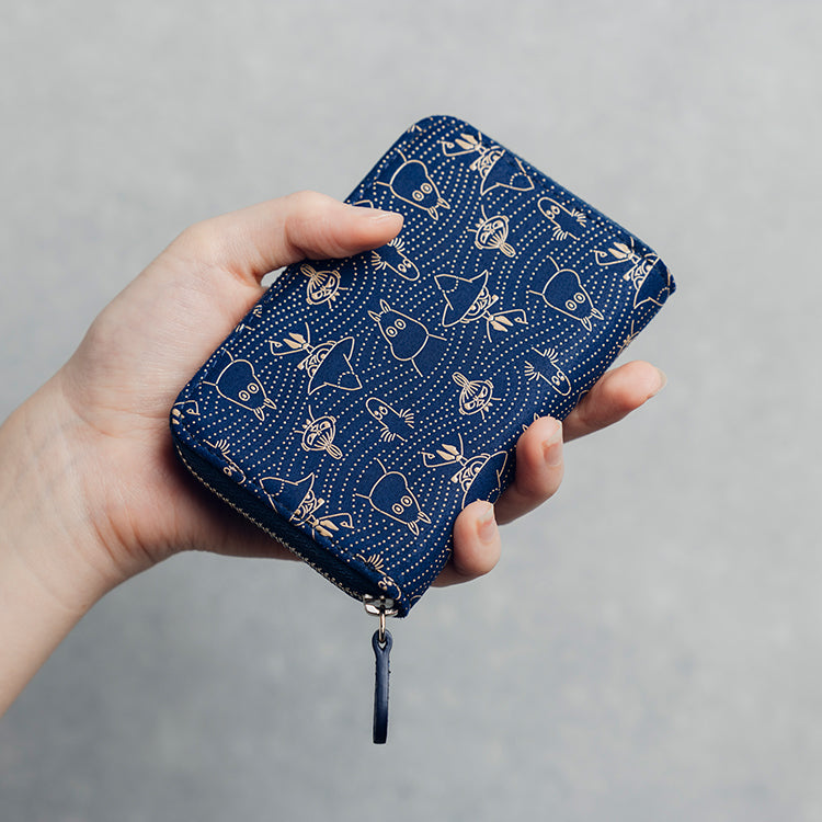 鹿革と漆を使用した、高級感のあるラウンドファスナータイプの小銭入れです。