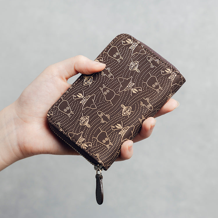 鹿革と漆を使用した、高級感のあるラウンドファスナータイプの小銭入れです。