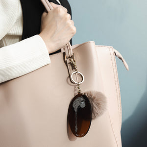 ふわふわのファー素材とアンティーク調のキーリングが上品な雰囲気をプラス。