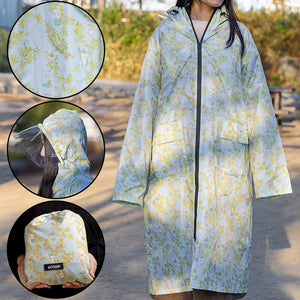 軽量で持ち運びに便利な収納袋付きレインコートです。