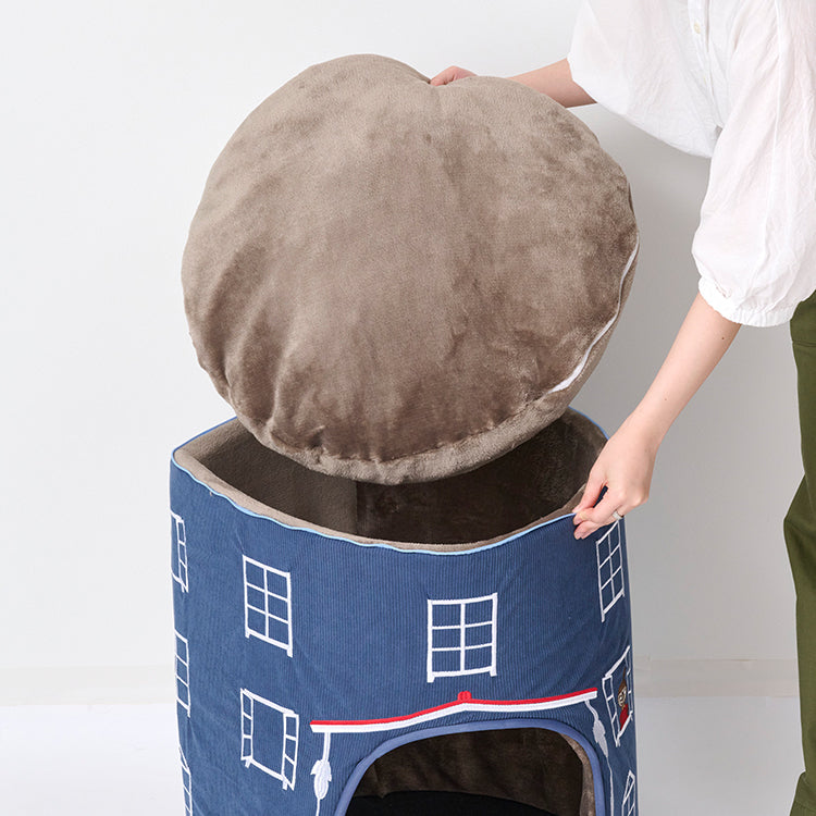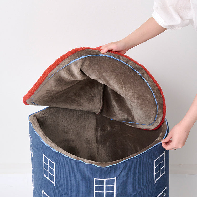 屋根や窓からキャラクターがのぞく遊び心のあるデザインで、ペットのリラックス空間にぴったり。