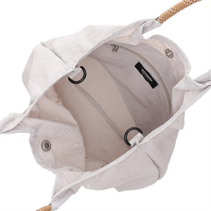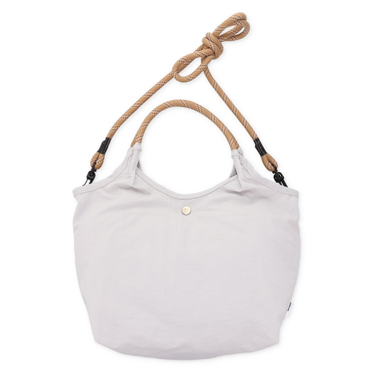 ロープショルダーは結んで長さ調整OK、取り外せばトートバッグとしても使えます。