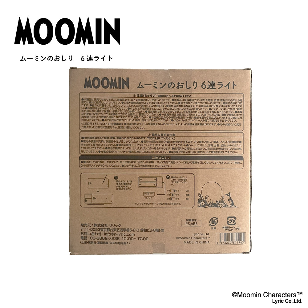 予約商品について詳しくはこちらをご確認ください。ムーミンのおしりが6つ並んだ、ユニークでかわいい6連ライトです。