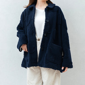 ふんわりやわらかなフリースジャガード素材のガウンです。