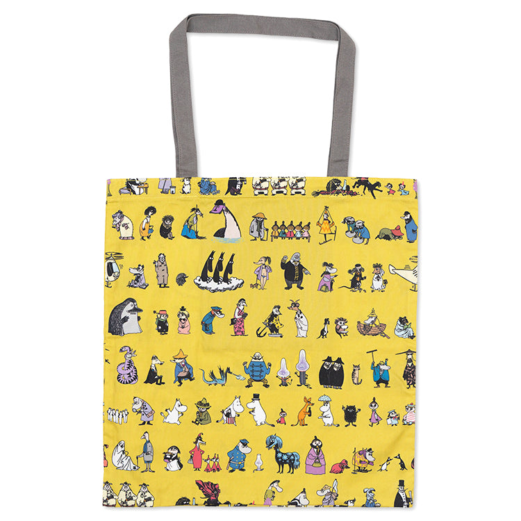 ムーミン80周年を記念した、キャラクターがいっぱいのにぎやかなデザインのトートバッグです。
