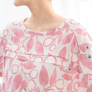 This dress is made of Takashima crepe, which feels smooth against the skin. Made from 100% cotton, it is highly absorbent and keeps you comfortable even in hot weather. It is a pull-over type that can be put on quickly, and another point is that it has pockets on both sides.