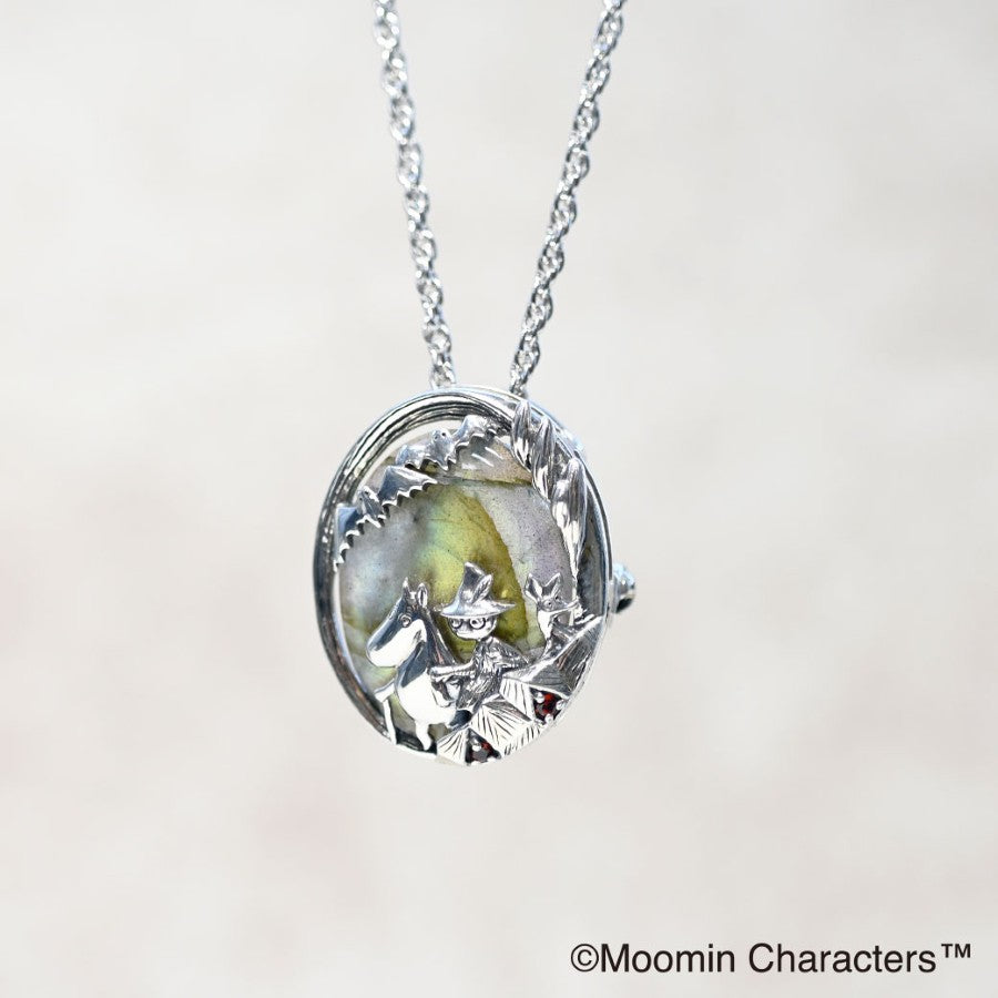 Snufkin invites the three of them on a walk to the valley where garnets grow, and they slowly make their way among the rugged rocks and thorny bushes.This scene is depicted using delicate craftsmanship and large, mysteriously sparkling labradorite.