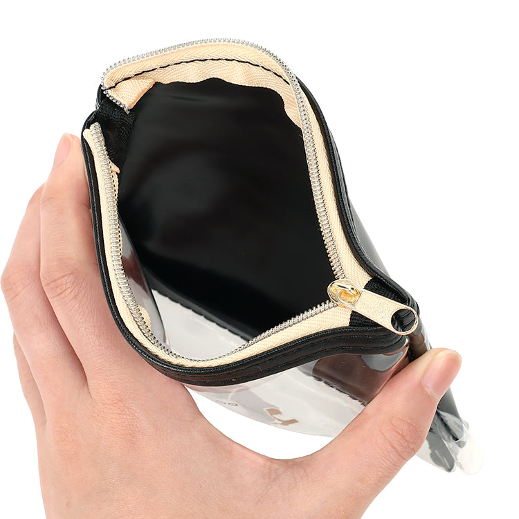 This is a cute PVC pouch with a clear front. Perfect for storing small items such as cosmetics and coins. It's convenient because you can see the contents, making it easy to take out.