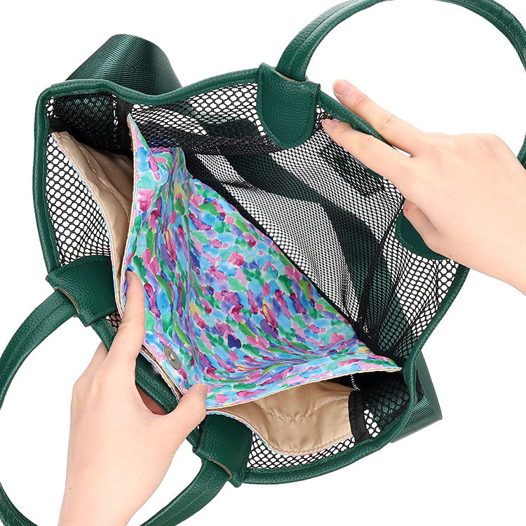 The mesh pockets on the front and back are convenient for storing small items that are easy to see and access quickly.
