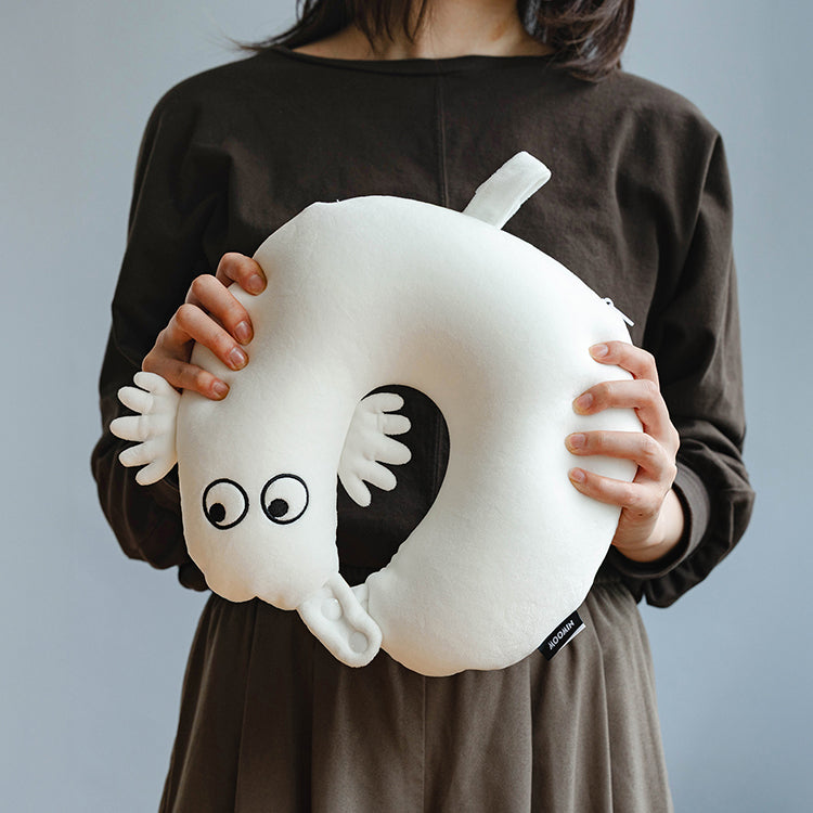 ネックピローにもニョロニョロの形をしたクッションにも変形できる2WAYなまくら。
