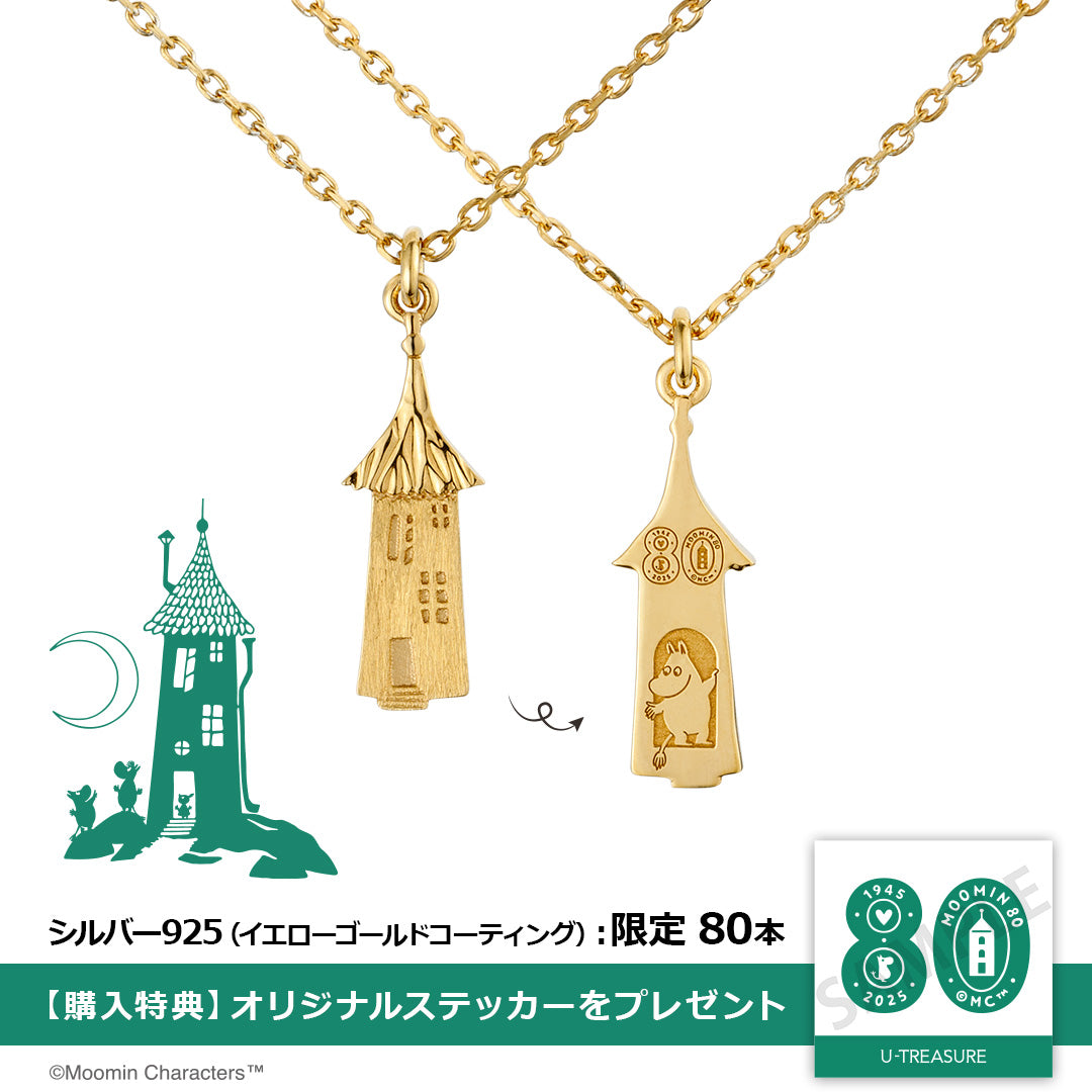 ムーミン小説80周年記念のロゴが刻印された、特別仕様のネックレスが数量限定で登場。