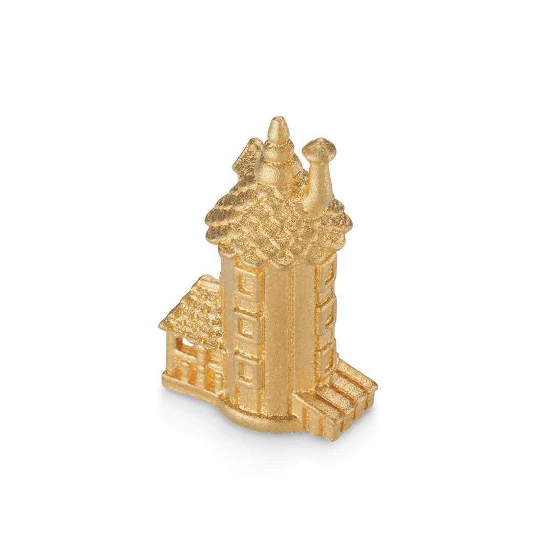 煙突から扉まで細部にわたる繊細な造形と、永遠に輝きを失わない純金の輝きが、温もりあるムーミンやしきを特別な存在へと昇華させます。